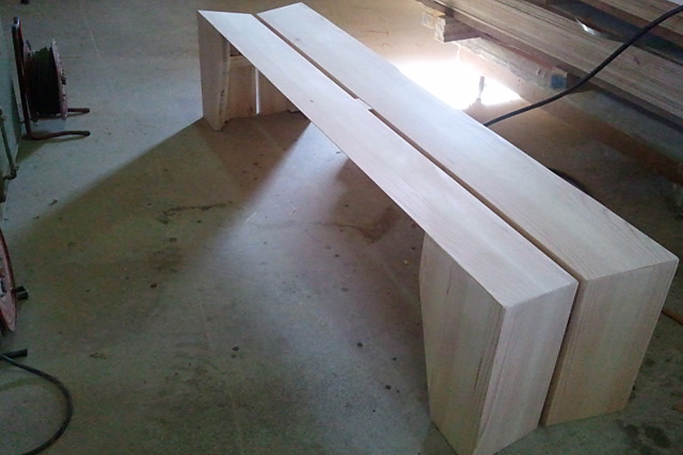 県産木材を使用した3人がけのベンチというテーマで、ひのき材を使ったもの、J-Panelという集成材を使ったもの、
