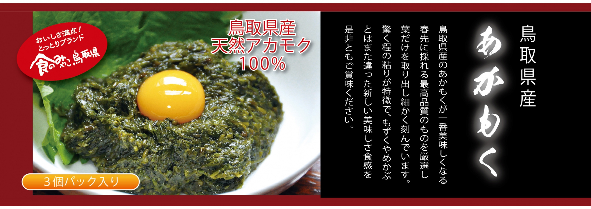 近年、『あかもく』独特のこのネバネバには、食物繊維、ポリフェノール、フコイダンなど健康維持に良いとされる成分が、昆布やメカブといった海藻よりも豊富に含まれていることが発見され、注目を浴び始めたことから、障害者の作業所と鳥取の漁業協同組合との共同でアカモクの商品化を進めていきました。