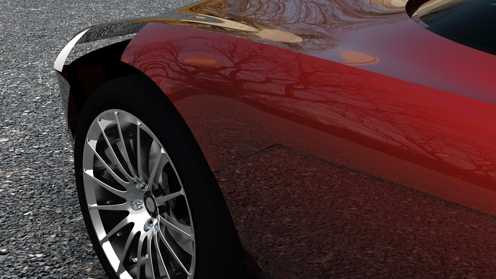 サイドまで回り込んだフロントウインドウがいつの間にかルーフの面に変わっていく、そしてそれに沿って光の反射や塗料の色がグラデーションを描いで変化していく、清流の流れを透して見える川石を思わせる造形を狙っています。