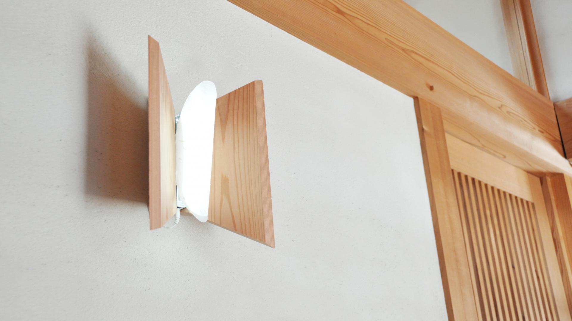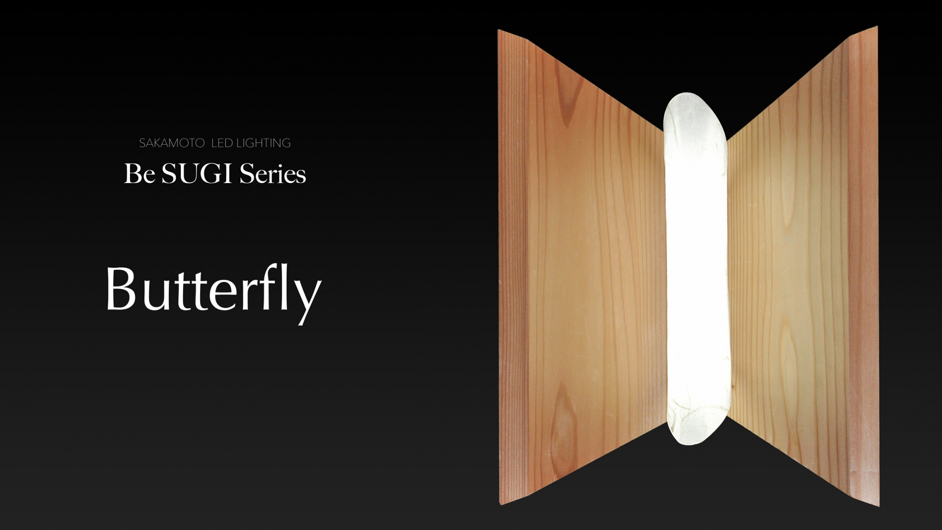 しかも、両サイドの蝶々の羽の部分が和紙の拡散によって照らされ、照らされた杉の木目が蝶々の羽の文様のように浮かび上がり、Butterflyの名のとおり明かりに照らされた蝶々のように光るよう設計してあります。