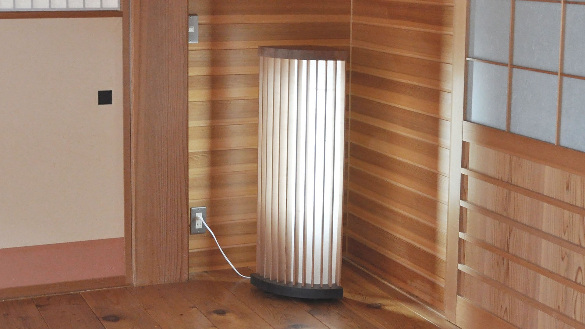 鳥取県智頭町で杉を製材しているメーカーと電子機器の設計製造を手がけるメーカーとのコラボレーションにより、智頭100年杉の凛とした美しさに触発された、自由な発想によるインテリアライティングを開発しました。