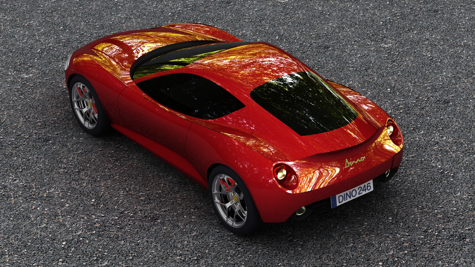 ディーノのディーノたる魅力はそのままに、しかしサイドのエアインテークやトンネルバックといった記号的なディティールは使わないで、全体の印象でディーノを感じさせるデザインを心がけました。しかしある程度完成に近づいてくると、どうしても《よりディーノらしく見えるように》と、これらのディティールに頼りたくなる誘惑を跳ね除けながらの試行錯誤でしたので、かなり迷いのあるデザインとなっています。