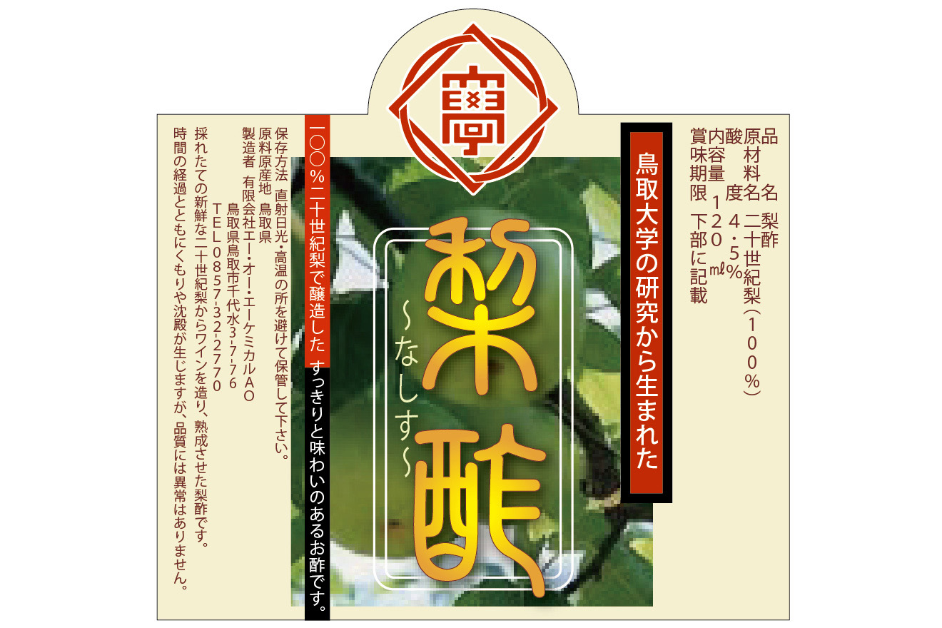 とある化学製品を研究開発している企業からの依頼で制作した梨のお酢、『梨酢』のラベルです。