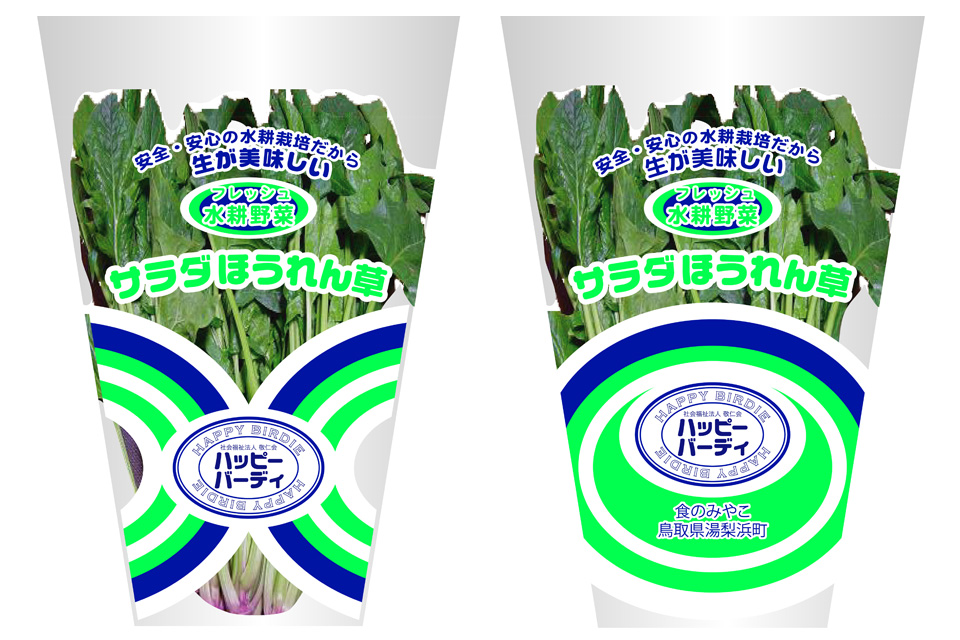 ビニールハウスで育てられた水耕野菜のパッケージ開発です。