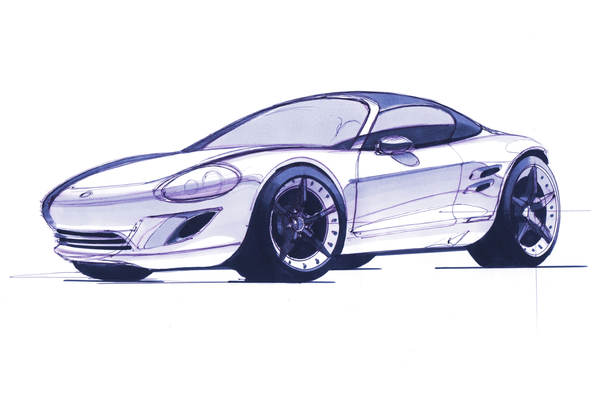 西海岸のメーカーなので、カリフォルニアの有名なマルホランド峠を颯爽と駆け抜けるライトウェイトスポーツをイメージしてデザインを進め、全体の雰囲気を70年代イタリアのカロッツェリア、特にピニンファリーナを意識してまとめてみました。